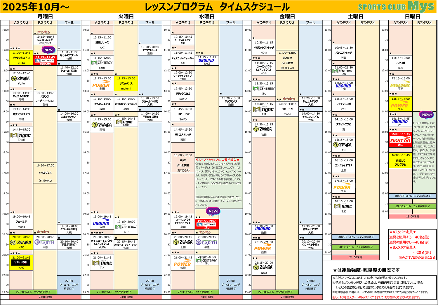 プログラムスケジュール(会員向け) ~ 2025年10月 ~ 週替わりレッスン ~ 2025年9月 ~ 週替わりレッスン ~ 2025年10月 ~ 祭日レッスン ~ 2025年9月23日 ~ 祭日レッスン ~ 2025年10月13日 ~
